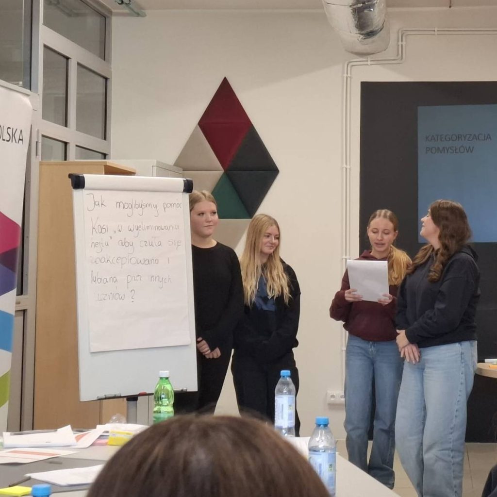 Pracowaliśmy w odrębnych zespołach przyjmując pewne role, uczyliśmy się empatii poprzez analizowanie potrzeb innych, prowadziliśmy dyskusje i burze mózgów, tworzyliśmy propozycje działań społecznych, mających na celu lepszą komunikację, a tym samym rozwój i zrozumienie oraz potrzeby.