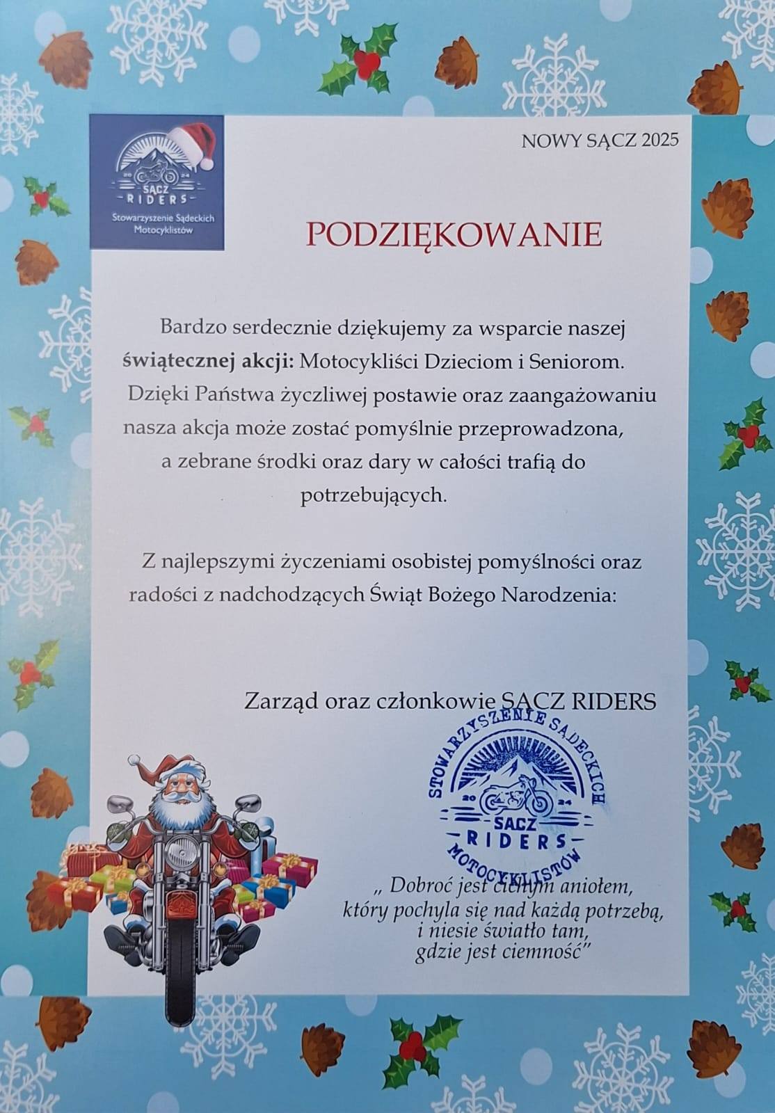 Akcja zbierania darów dla Motomikołajów dobiegła końca i przyniosła prawdziwy rozmach dobra. Dzięki Waszej hojności powstała góra paczek, która wkrótce wyruszy w drogę, by rozświetlić zimowy czas dzieciom i rodzinom potrzebującym wsparcia. Zebraliśmy naprawdę dużo, a każdy podarunek stał się cegiełką w budowaniu ciepła, które jedzie teraz na dwóch kołach. Dziękujemy wszystkim, którzy dorzucili swoje serce do tej świątecznej wyprawy. Jesteście wspaniali i umiecie sie dzielić. Dziękujemy