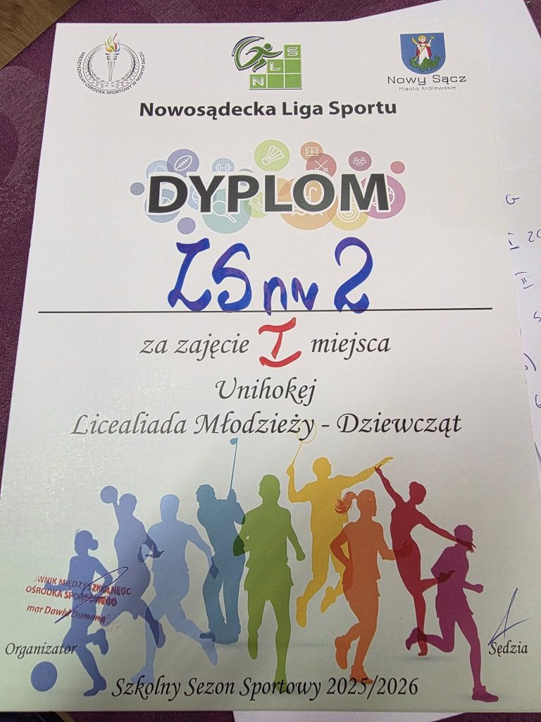 Pierwsze miejsce w unihokeju w ramach licealiady mlodzieży. Nasze dzielne dziewczyny pod wodzą Bartłomieja Luberdy wywalczyły awans na zawody wojewódzkie.