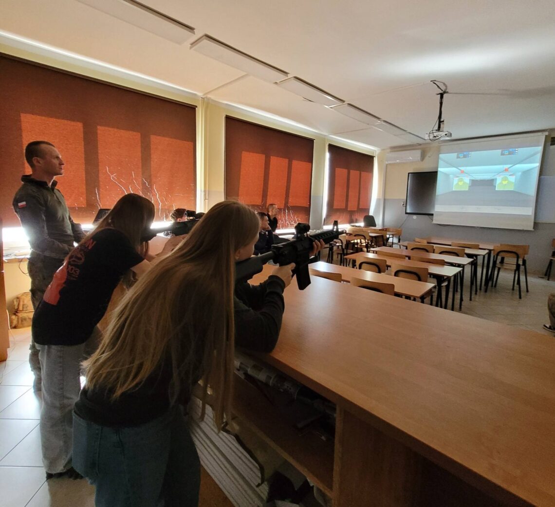 Młodzież nie próżnowała – wzięli udział w profesjonalnych zajęciach z bronioznawstwa, a potem sprawdzili swoje oko i opanowanie na wirtualnej strzelnicy. 🔫💻